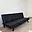 Obývací část: Jídelní stůl se dvěma židlemi, rozkládací černá pohovka, komoda pod TV a závěsné skříňky. Do bytu je možné dodat manželskou postel včetně lamel (bez matrace).