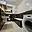 Obývací část s kuchyňským koutem je vybavena moderní kuchyňskou linkou na míru. K dispozici je plně integrovaná myčka nádobí, sklokeramická varná deska, vestavná trouba, mikrovlnná trouba, digestoř a prostorná lednice se samostatným mrazákem. Součástí je také jídelní stůl se dvěma židlemi. V obývacím pokoji se nachází rozkládací sedací pohovka a sada závěsných skříněk.