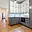 orientovaná na východ a je vybavená na míru vyrobenými psacím stolem a vestavěnými skříněmi.